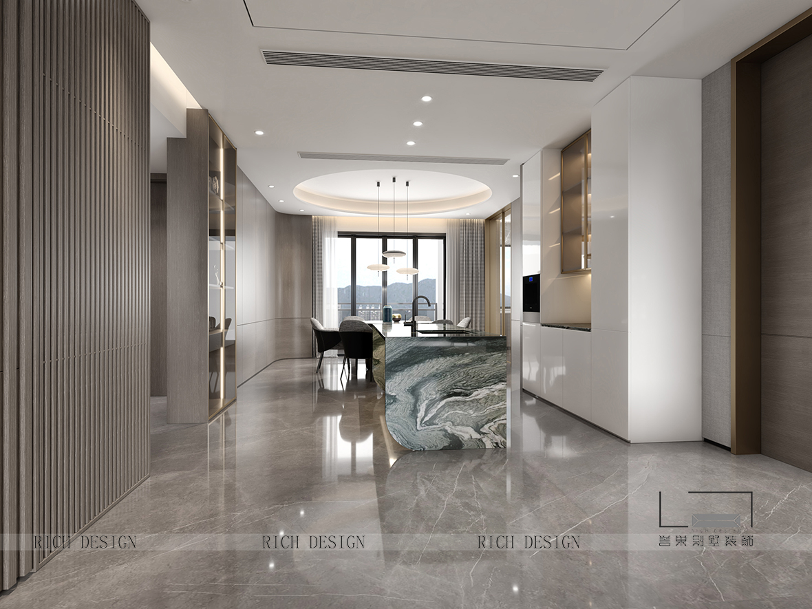以光為引,納景為畫,融現代簡約與東方禪意,打造可游可居的詩意棲所。天然木石肌理與弧形家具相映,在留白中勾勒溫暖;通透界面消弭內外界限,讓庭院綠意、流水聲與室內琴聲、書香自由對話。最終在光影流動間,成就一座會呼吸的生活劇場。